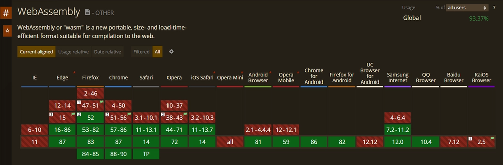 A note on browser compatibility - most modern browsers will support WASM and Blazor, but keep in mind that if you need to support older browsers like IE 11, make sure to check the browser compatibility tables on caniuse.com for both Web sockets and Web Assembly and see which model works for you.